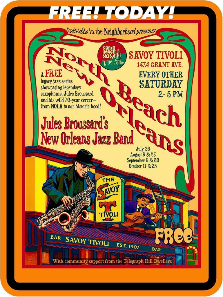 Legacy Jazz series showcasing legendary saxophonist Jules Brousard. Jules’ musical career spans over 7 decades from NOLA to historical North Beach. Experience the soulful sounds of jazz saxophone legend Jules Broussard live at the Savoy Tivoli. Dive into a night